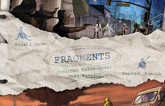 • Grrre Games Un jeu de Jonathan Favre-Godal et Théo Rivière illustré par Magali Aude et Raphaël Samakh Fragments est un jeu où vous créez l’histoire dont vous êtes les héros et héroïnes. Plongez dans deux univers différents, comprenant 4 thèmes chacun. Puisez dans votre imagination, revivez des scènes mythiques de vos films ou livres préférés pour évoluer dans une expérience ludique originale. Novembre 2021.