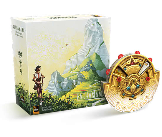 Sit Down Un jeu de Olivier Grégoire illustré par Raphaël Samakh Dans Tiwanaku - Deluxe Edition (d'abord annoncé comme Pachamama), vous conduisez votre tribu en territoire inconnu à la recherche de nouvelles terres à cultiver. Votre objectif : explorer des régions et en dessiner les contours pour développer des cultures selon les coutumes et l'héritage de Pachamama. 2023.