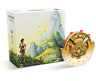 • Sit Down Un jeu de Olivier Grégoire illustré par Raphaël Samakh Dans Tiwanaku - Deluxe Edition (d'abord annoncé comme Pachamama), vous conduisez votre tribu en territoire inconnu à la recherche de nouvelles terres à cultiver. Votre objectif : explorer des régions et en dessiner les contours pour développer des cultures selon les coutumes et l'héritage de Pachamama. 2023.