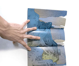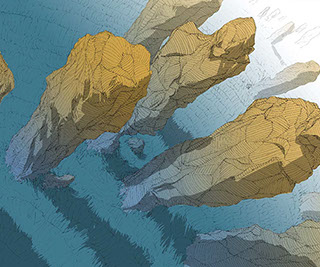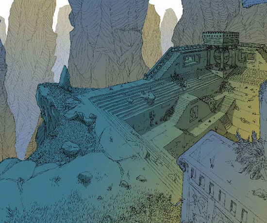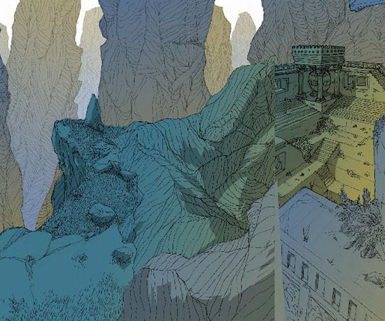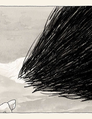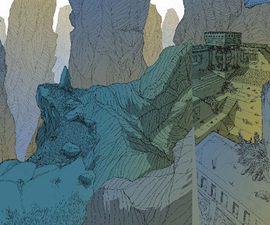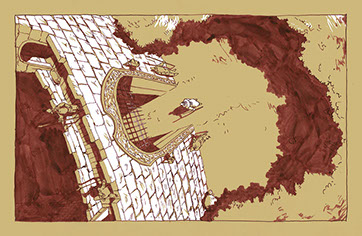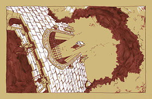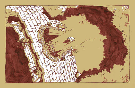 • Le passage d’une époque, l’empreinte d’une civilisation disparue, la fin d’une ère. 12 pages. 21cm x 11 cm. Encres de chine et colorisation numérique. Novembre 2016.