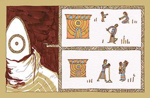 • Bande dessinée muette qui narre l’histoire d’une conteuse masquée voyageant de ville en ville pour raconter des histoires en lien avec ses masques. 20 pages. Couleur Encres de couleur et colorisation numérique. septembre 2018.