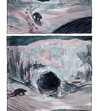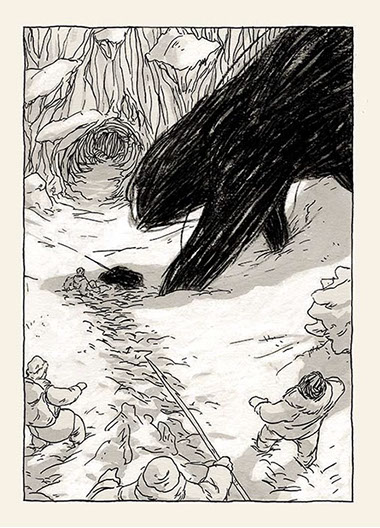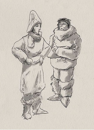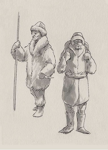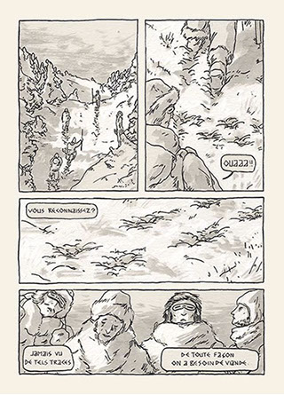 Bande dessinée sur les aventures d’un groupe de chasseur dans le grand froid. 10 pages. 19.5cm x 13.5 cm. Encres de chine et numérique. Novembre 2016.